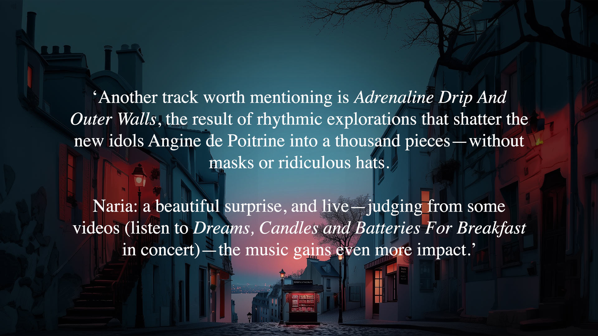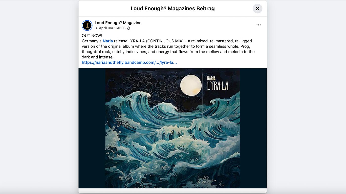 Review by Roelof Noorda April 12, 2026, https://demuziekplank.nl/reviews/naria-lyra-la/ “The album by the German band Naria…