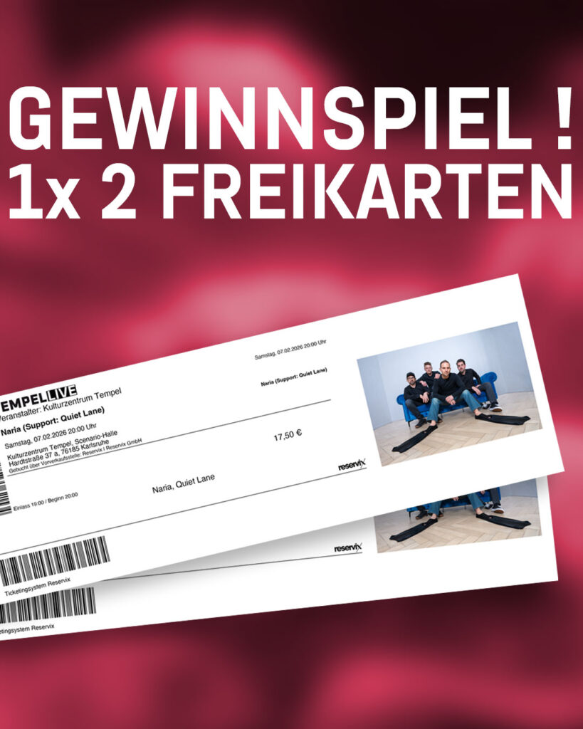 We’re giving away 1×2 free tickets for our concert! NARIA liveTempel, KarlsruheSaturday, February 7th How to enter: Comment on this post on Instagram and tag the person you’d go to the concert with Entry deadline: Sunday, February 2, at 12:00…