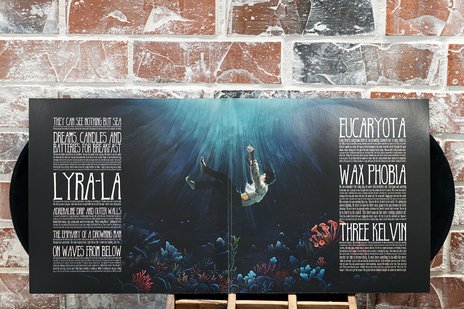 All handpaintings are based on the leitmotivs and sceneries of the first concept album “Lyra-La”. You will find all paintings on the vinyl version. Check out our discography to listen to the songs of this double vinyl album.